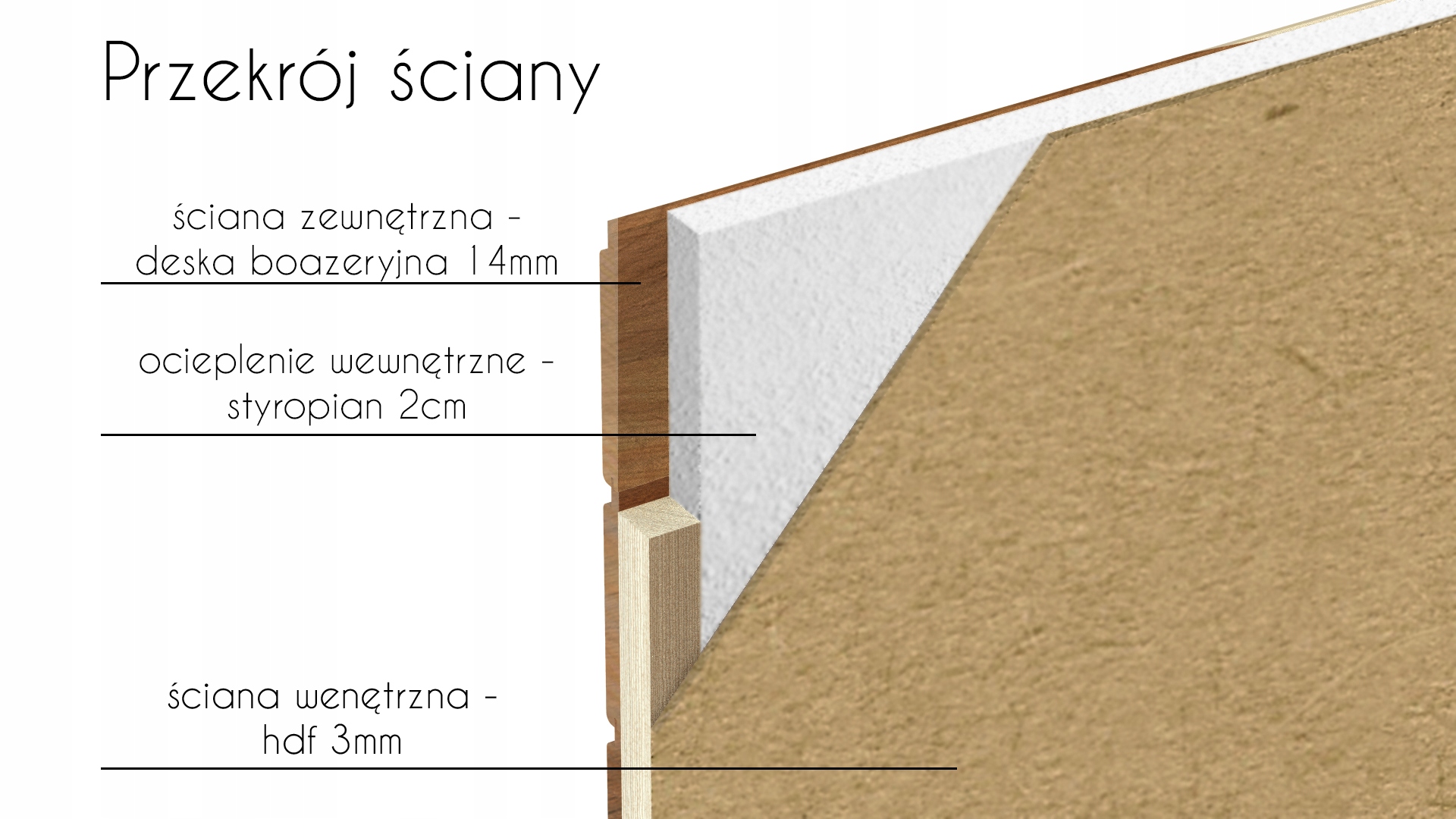 У будиночку можуть розміститися дві дорослі кішки. Стіни будиночка з висушеної сосни (вагонка 1,5 см). Кожна стіна утеплена пінопластом завтовшки 2 см, а потім покрита плитою ДВП. Для виготовлення підлоги використовувалася вологостійка OSB. Блоки з бука, прикріплені до низу, створюють відстань між підлогою та підлогою. Щодо даху, то вона була покрита солероїдом. Дах відчиняється.